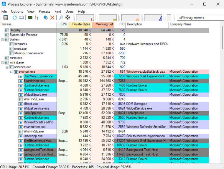 A Windows Feladatkezelője helyett használhatod a Process Explorert, amely jóval több valós idejű információt képes megmutatni - többek között a folyamatok közötti kapcsolatokat vagy akár azt is, hogy egy-egy szoftver (folyamat) mely fájlokat használja éppen. Ez utóbbi akár olyan esetben is hasznos lehet, amikor törölnél egy fájlt, de azt a rendszer nem engedi.
