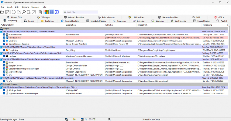 Szintén a Windows egyik beépített funkciójának kiváltására, felturbózására szolgál az Autruns, amelynek azonban csak egyik képessége az, hogy meg tudja mutatni a Windowszal automatikusan elinduló programok listáját (persze a listát változtatni is lehet, ha szeretnéd). Emellett fontos, hogy az időzített feladatokat, a böngészőkbe beépülő csomagokat, az Office bővítményeket vagy akár a telepített kodekeket is megnézheted - azaz minden olyan rendszerösszevető említésre kerül itt, ami bármilyen módon a boot sebességét befolyásolja. És persze az is kiderülhet, ha olyan alkalmazás indul el a háttérben minden alkalommal, amelyet nem te telepítettél fel a PC-re. Ha bizonytalan vagy a tekintetben, hogy egyik vagy másik program kártékony-e, akkor pedig jól jön majd, hogy itt is van lehetőség arra, hogy a programokat, DLL fájlokat egyetlen kattintással elküldd a virustotal.com-hoz ellenőrzésre.