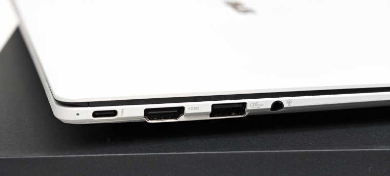 Az első ilyen tulajdonság, amit kézbe fogva a gépet megtapasztalsz, az a mindössze 1 kg-os, pontosabban 990 grammos tömeg. Ez máris kiválóan hordozhatóvá teszi a gépet, ami amúgy sem egy óriás, mindössze 10,9 mm vékony (a legvékonyabb pontján) és nanokerámiás bevonatú, magnézium-alumínium kompozit háza teljes mértékben karcálló. A karcok mellett a foltosodás, ujjlenyomat-vonzás sem jellemző rá. Ez üzleti gépnél már csak azért is előny, mert amikor egy tárgyalás vagy meeting elején előveszed, nem kell törölgetned, hogy kinézzen valahogy a magad elé lerakott géped.