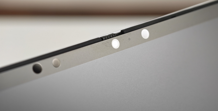 A 14"-os kijelzőt vékony káva keretezi: alul egy ExpertBook-felirat, felül pedig az arcfelismerésre is alkalmas IR-kamerával megtámogatott FHD-kamera, valamint a mikrofon kaptak helyet. Fontos biztonsági extra, hogy a kamera lencséjét egy fizikai takarólemezzel blokkolhatod.