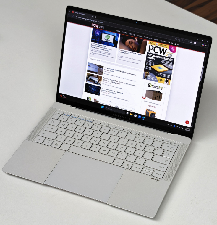 A 6 darab hangszóró nagyon jól mutat papíron, és titkon mi is sokat vártunk tőle, holott sejtettük, hogy 1 kg alatti tömegnél nem lehet ilyen nehéz komponensekkel telepakolni a készülékházat. Az ExpertBook Ultra hangzása méretéhez képest egészen meleg és telt, viszont erőnek híján van, nem túl hangos, mélyekre ne számíts. Persze irodában ez tökéletes, és azért nem tompa dobozhangzást kapsz a (rengeteg) pénzedért.