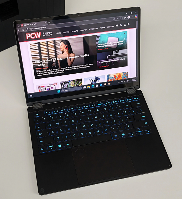 Az is szép mérnöki bravúr, hogy ekkora teljesítmény belefért 1,39 kg-ba és 15,8 mm vastagságba, miközben a gép 360 fokos zsanérra szerelt OLED-kijelzőt kínál, a hosszú üzemidőt pedig 73 Wh-s akku biztosítja. A gyorstöltésnél akár 130 wattos Type-C töltést is bevethetsz, de saját töltőfeje is van a gépnek.