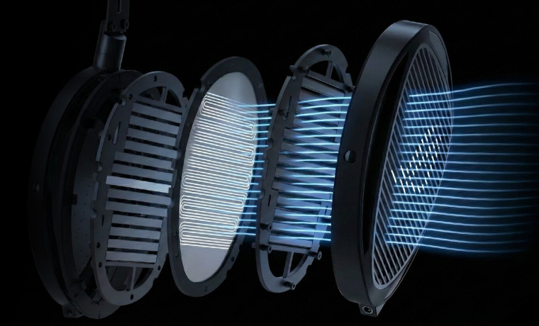 Ez azonban még csak a kagylók felépítése, odabent nem hagyományos driverek dolgoznak. A HIFIMAN saját fejlesztésű, síkmágneses megoldása került ide. Ez nagyon vékony, könnyű membránra felvitt vezetősávokat jelent, a mágnesek pedig a membrán két oldalán helyezkednek el. A mágnesek felületét és alakját a HIFIMAN lekerekítette, így áramvonalassá tette őket - ezt nevezik Stealth Magnet dizájnnak.