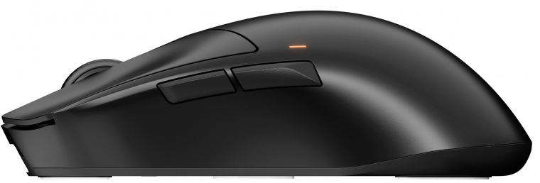 Azért az sem igaz teljesen, hogy nem került RGB LED a Dark Perk Sym-be. A felső rész bal oldalán egy nagyjából 1x3 mm-es fény villan fel minden alkalommal, amikor DPI-t váltasz. Ehhez viszont meg kell fordítanod az egeret és az alján található gombot megnyomni. Minden egyes DPI-beállításhoz más-más színt tudsz párosítani. Megosztja a gamereket, hogy ez a jó megoldás-e, vagy felül, a görgő alatti DPI-váltó gomb. Akik az alsót szeretik jobban, azzal érvelnek, hogy így nem tudják véletlenül megnyomni a játék hevében. Nekünk némi gyakorlást követően sikerült egy kézzel is megoldani a DPI-váltást, de két kézzel valamivel pontosabb és gyorsabb.