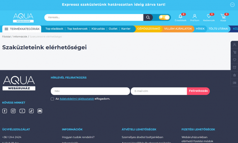A legfrissebb fejlemény azonban az, hogy az Aqua Optima Kft. szaküzletei bezártak, a weboldal szerint határozatlan időre. A webshop még üzemel, sőt, a telefont is felvették szinte azonnal, amikor hívtuk őket.