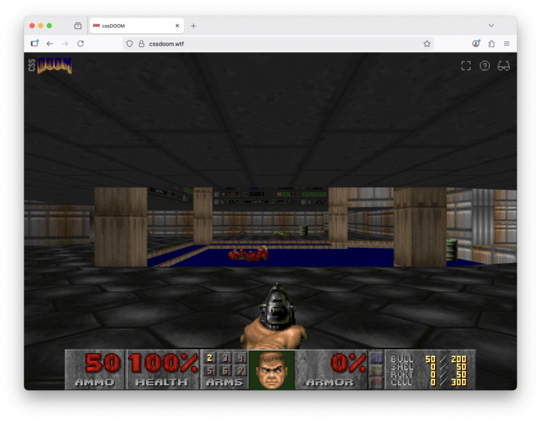 Leenheer egy igazi zseni, aki korábban már készített egy különleges Doom-verziót, amely oszcilloszkópon futott, és ebben is annak a projektnek a kódját használta fel újra. A Doom eredeti WAD fájljából kinyerte a pályaadatokat, majd minden falat, padlót és objektumot külön divként helyezett el a böngészőben.