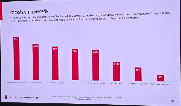 A felmérés alapján 58%-a a felhasználóknak ritkábban, mint havonta végez csupán valamilyen adatmentést, és ha végez, akkor ezek közel a fele (43%) csupán az adott eszköz belső tárolójára készít másolatot, ami például egy zsarolóvírus, lopás vagy meghibásodás ellen konkrétan zéró védelmet nyújt.