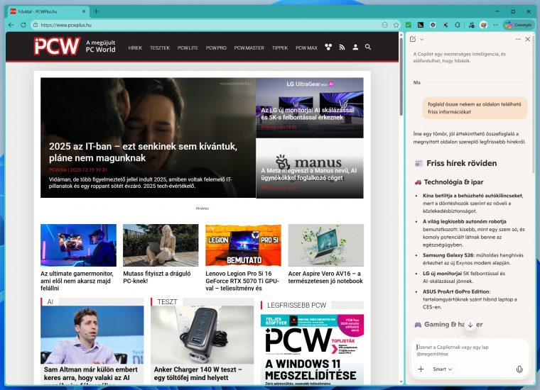 Böngésző + AI: nagy kaland, gondolhatnád. Az Edge-ben már régóta, de tulajdonképpen minden más böngészőben is minimum fél éve működik valamilyen mesterséges intelligencia alapú szolgáltatás. (Visszacsatolva oda, hogy a kényelem milyen helyzetelőnyt tud biztosítani valakinek, itt jegyeznénk meg, hogy a Google simán, lényegében fikarcnyi veszteség nélkül túlélte, hogy utolsóként, 2025 májusa és szeptembere között integrálta az AI-t saját böngészőjébe.) A böngészőbe integrált mesterséges intelligencia viszont nem ugyanaz, mint a mesterséges intelligencia alapú böngésző! Érdemes tehát tisztázni a fogalmakat!