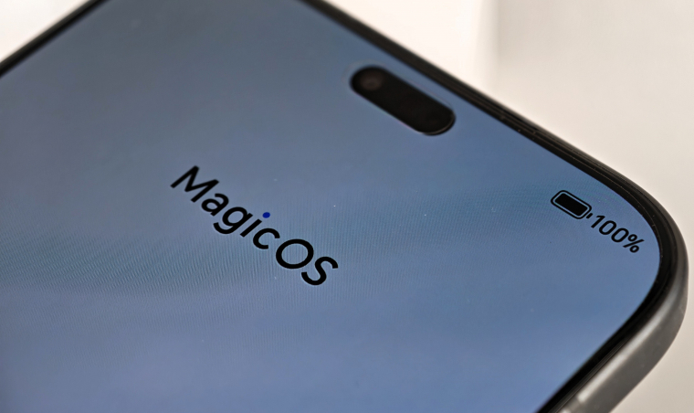 A kereten a szokásos gombok és csatlakozók mellett a jobb alsó részen egy AI-gomb is található, amilyennel már korábbi Honor mobiloknál is megismerkedhettünk. Ez többféle funkcióra is feltanítható, attól függően, miként nyomjuk le. Emellett a hosszúkás gomb felülete érintésérzékeny, így az is külön funkció, ha elhúzod az ujjadat rajta lenyomás nélkül. Ez kifejezetten jó zoomolásnál, ráadásul ahogy azt a Magic8 Pro tesztünkben kifogásoltuk, immáron nem csak fekvő, hanem álló módban is bevetheted nagyításra. A programozhatóság és a többféle üzemmód hasznos és a kategóriában egyedinek is számít, de véleményünk szerint túlságosan alulra került, közepes, vagy nagy méretű méretű kézzel kényelmetlen lesz. Ugyanez mondható el a kijelző alatti optikai ujjlenyomat-olvasóról is. Nem a leggyorsabb darab, de pontos, viszont ezt is túlzottan alulra helyezték ahhoz, hogy kényelmes legyen.