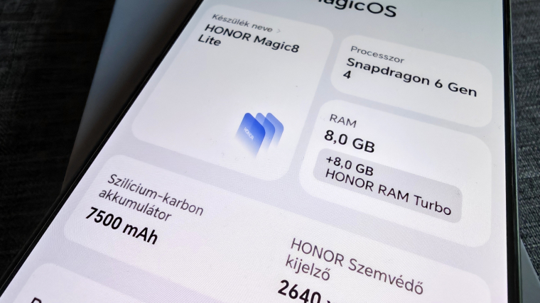 A Magic8 Lite - bár 2026 januárjában jelenik meg a piacon, még Android 15 rendszert futtat és MagicOS 9 kezelőfelület került rá. Ez sajnálatos, a MagicOS 10 sok újdonságot hoz, ráadásul így a beígért OS-frissítések számából is egyből levonhatsz egyet, bár a 6 OS-frissítés és 6 év biztonsági szoftvertámogatás nem olyan rossz.