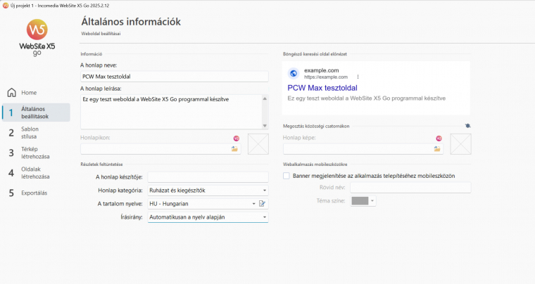 Teljesen máshogy működik a weboldalak létrehozása, ha a hagyományos út helyett a WebSite X5 Go 2025-ös kiadását választod. Itt nem programozással, rengeteg dizájnelem legyártásával indul a projekt, ehelyett a programban egyszerűen ki kell választanod az 50 ingyen felhasználható sablon közül azt, ami a legjobban illik terveidhez. Ez még nem jelenti azt, hogy így is fog kinézni a végén a weboldalad, de ezzel az első lépéssel máris rengeteg munkát levesz a válladról a program. Ha a felépítés, menürendszer stb. nagyjából megfelel, ezt máris letudtad, következhetnek a weboldaladhoz tartozó apróbb beállítások. Ilyen a keresőkben megjelenő weboldal neve, leírása, a FAV ikon stb. Részletesen beállíthatod a sütikezelést, a figyelmeztető ablakot, sőt, az induláskor főoldalon megjelenő extra felugró ablakokat, ikonokat is.
