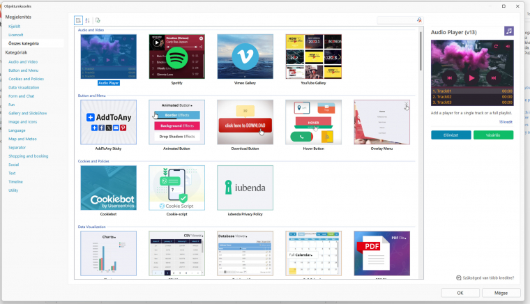 A menüknél, feliratoknál, de még a képnézegető modulnál is aprólékosan testreszabhatod az effekteket, a megjelenést stb. tényleg teljes kontrollt kapsz épülő-szépülő weboldalad felett. Speciális objektumokat, közösségi médiát, levelező modult is beépíthetsz, tényleg rengeteg lehetőséget biztosít a program, hogy valóban azt kapd, amit megálmodtál.