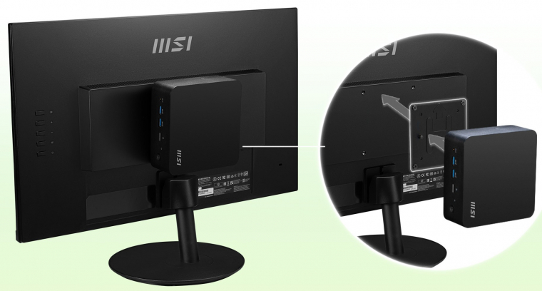 Az MSI mérnökei ezt pontosan tudták, és igyekeztek minden olyan funkciót beépíteni, ami ezeken a felhasználási területeken szükséges lehet. A sok port mellett a VESA-kompatibilis felszerelhetőség is ezek közé tartozik, így szabványosan akár egy monitor hátuljára, akár a falra vagy zárt állvány belső részére is rögzíthető a gép (a szükséges konzolt külön tudod megvásárolni).