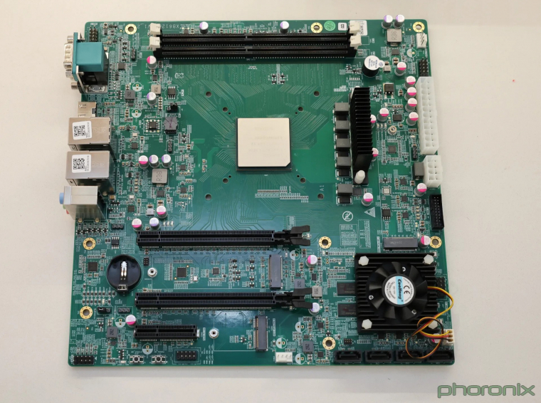 A Loongson 3B6000 nevezetű processzorról van szó, amely 2,5 GHz-en dolgozik, és 12 processzormagja van, ami SMT-vel 24 programszálat képes egyszerre feldolgozni. A processzorban integrált grafikus vezérlő is található, valamint DDR4-3200-as memóriavezérlő, PCIe csatoló és a mellé érkezett tesztlapon még SATA portok is voltak.
