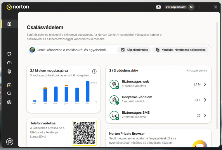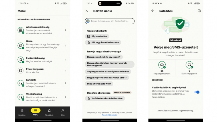 Ezekhez érkezett meg az új korokhoz és modern fenyegetésekhez tökéletesen passzoló Deepfake-védelem, valamint a Norton Genie AI-alapú asszisztens. Mindkét modul olyan támadási formákra, biztonsági gondokra kínál hatékony megoldást, amelyek 1-2 éve még sehol sem voltak, vagy csak 1-1 kiemelt és fontos embert (például politikust) céloztak.