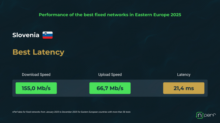 Válaszidő tekintetében viszont már Szlovénia áll az élen, ahol a letöltési sebesség 155,0 Mbps, a feltöltési 66,7 Mbps, a késleltetés mindössze 21,4 milliszekundum. Ez az gyors reagálás az optimalizált hálózati architektúrának és a tartalomszolgáltató hálózatok szervereinek közelségének köszönhető, amelyek lehetővé teszik, hogy a felhasználók földrajzi távolságtól függetlenül is gyors válaszidőt tapasztaljanak.
