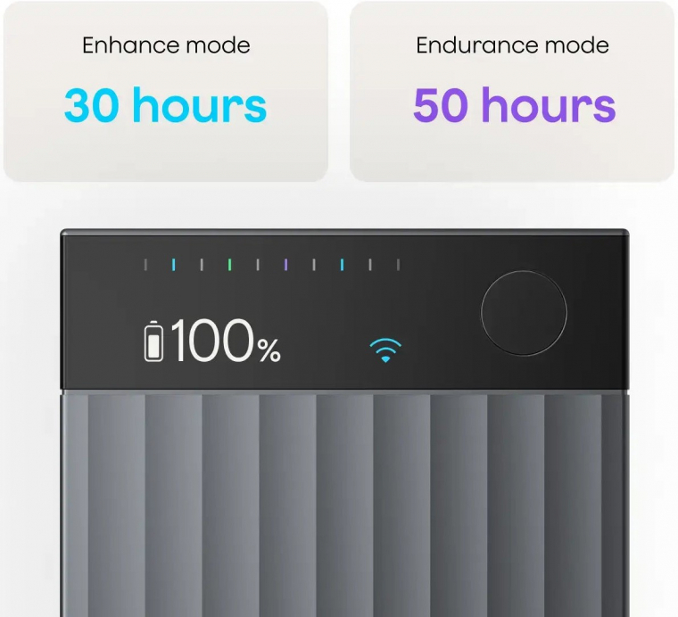 A gyártó minimum 30 órás rögzítést ír, amit ugyan mi nem próbáltunk megdönteni a teszt során, de egy megbeszélésekkel telepakolt egész napot tökéletesen kibírt egyetlen töltéssel.