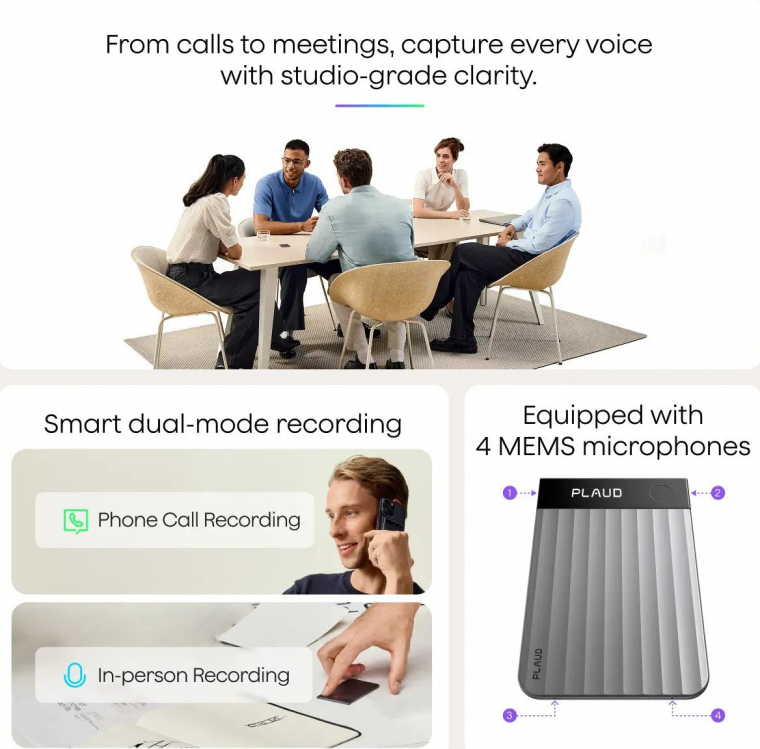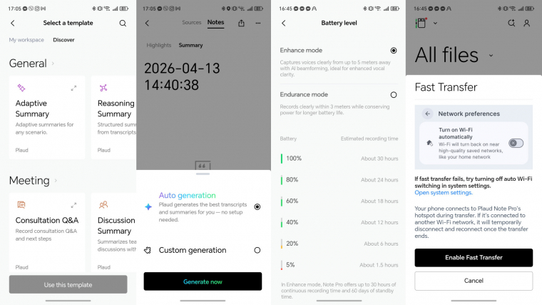 A legfontosabb komponense a készüléknek a négy sarokban elhelyezett MEMS-típusú mikrofon, ami pontosan, akár 5 méter távolságból is képes tisztán kivehetően rögzíteni az emberi hangot. A rögzítés egy 64 GB-os belső tárhelyre történik, teljesen offline módon, internetkapcsolat nélkül. Fontos még megemlíteni, hogy a Bluetooth-on keresztül kapcsolódó Note Próról viszonylag lassan "csorog át" egy nagyobb hangfájl (tesztjeink során kb. 80 KB/s volt a tempó).