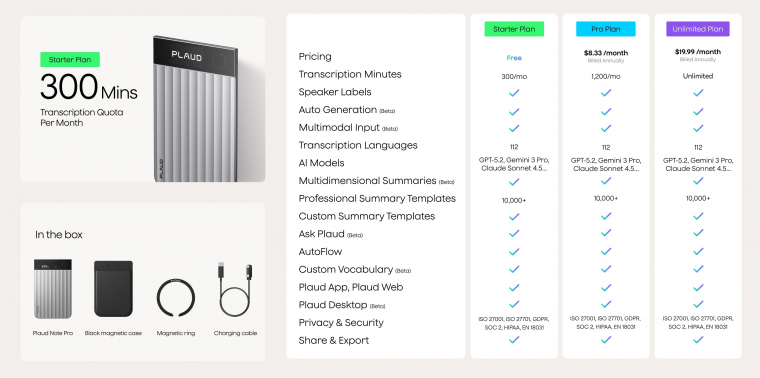 Abszolút jogos, hogy sokan, pláne akkor, ha kényes üzleti adatokról van szó, nem bíznak az ilyen, és ehhez hasonló online rendszerekben. A Plaud ebben igyekszik sokkal többet nyújtani, mint a fent leírt "manuális-fapados" megoldás. Például a cég megoldása teljes egészében megfelel a GDPR követelményeinek, emellett hivatalosan minősített SOC 2, HIPAA, EN 18031, ISO 27001 és ISO 27701 biztonsági előírásokat is teljesíti a készülék és a teljes rendszer is.