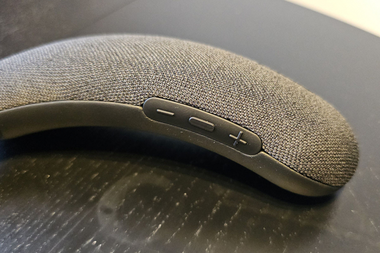 De maradjunk még a gomboknál: a bal oldali hangszóró belső felére a +, OK és - gombok, a jobb oldali hangszóró belső felére pedig a bekapcsoló és Bluetooth gombok kerültek. Utóbbit tudod használni a mikrofon ki- és bekapcsolására is, viszont emlékezned kell a mikrofon állapotára, mert visszajelző LED nincs (nem is lenne persze értelme, mert úgysem látnád). A gombok pozíciója pont megfelelő, mutató ujjal nagyon könnyen el lehet érni őket. Rajtuk kívül az USB-C csatlakozó az, ami érdekes lehet még, ezt szintén a jobb oldali hangszórón találod meg, annak is a külső részén - gumiborítás védi a portól. Az USB-C csatlakozó nemcsak töltésre szolgál; a csomagban mellékelt második kábellel a kütyüt jack dugasszal is össze tudod kötni, így alacsonyabb a késleltetés. Az ajánlott csatlakozási mód ettől még persze a Bluetooth, a BRAVIA Theater U a szabvány 5.2-es változatát támogatja. Hasznos extra, hogy egyszerre két eszközzel is tudod párosítani, amelyek között az elektronika dinamikusan vált.