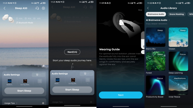 A szoftveres oldal nagyon alapos, a soundcore mérnökei tényleg mindenre igyekeztek gondolni, és sok hasznos szolgáltatást adtak a Sleep A30-hoz, hogy tényleg hasznos lehessen. Van rengeteg zaj (összesen 47-féle!), háttérhang stb, bár az számunkra kicsit furcsa, hogy ezek jelentős része valahogy kapcsolódik a vízhez…Az ANC nem zár el hermetikusan a külvilágtól, de tompítja a külső zajokat, a horkolás-kioltás pedig nagyszerű extra. Ugyanakkor az alvásmonitorozás nagyon pontatlan, itt érdemesebb inkább okosórára bízni a "méréseket", megfigyelést.