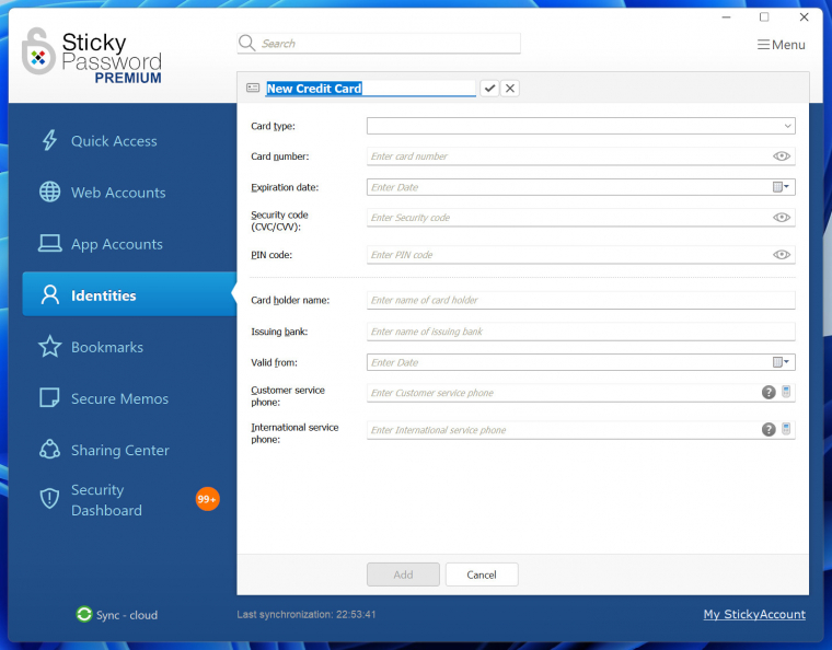 Mobil eszközökön a biometrikus azonosítás is támogatott, sőt, a kétfaktoros azonosítást is aktiválhatod bármely eszközödön. Az összes, mentett jelszó és személyes adat AES-256 titkosítással kerül elmentésre, a mesterjelszó pedig annyira biztonságos, hogy azt a szolgáltató soha sehol nem menti el a felhőben, csak az eszközeiden használhatod. Szintén a biztonságot növeli, hogy a Sticky Password egyike azon kevés jelszókezelőknek, amely a lokális Wi-Fi szinkronizálást is támogatja, vagyis eszközeid között úgy is szinkronizálhatod az adataidat, hogy a szolgáltató szerverére nem is kapcsolódsz fel. A biztonságos jelszó- és belépési adat-megosztást is támogatja a Sticky Password, ha valakivel szeretnéd megosztani az adott online szolgáltatásba regisztrált fiókodat.
