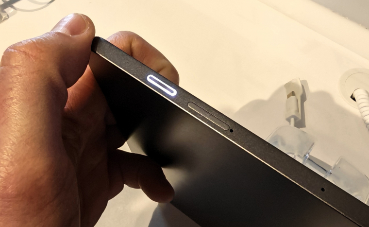 Az alu készülékházas készülék jobb oldalán ott a NXTPaper fizikai kapcsoló, a 6,9"-os kijelző pedig minden eddiginél fényesebb, közel 1000 nites LCD-panel, ami egyáltalán nem tükröződik, miközben színhelyes, 120 Hz-es és FHD+ felbontású.