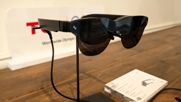 A TCL mobilrészlege kiállított még egy RayNeo Air 4 Pro szemüveget, amiben HDR10-képes kijelzők vetítik a szemed elé a nagy vásznat. A FHD-felbontás, 60/120 Hz-es frissítés nem rossz, van AI és 3D-s megjelenítés is, ráadásul az ár sem elrugaszkodott - 249 Euró. Ha még 20 Eurót rádobsz erre, választhatsz Batman vagy Joker előtéteket a szemüvegedre, ami elég menő, de ahogy kipróbáltuk, minket nem győzött meg a technológia ezen a szinten. A bemenethez Type-C-n kell csatlakoztatni eszközt, a kijelző pedig messze nem tölti be a teljes látóteredet.