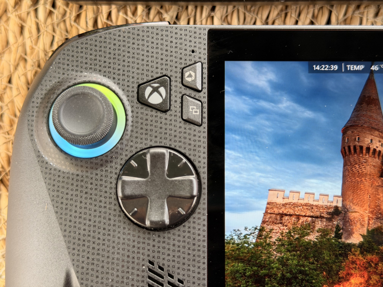 Külsőre ezen kívül meglehetősen ismerősnek hat a konzol, egyedül egy Xbox gomb kapott még helyet a bal oldalon, ami valójában csak arra szolgál, hogy könnyebben elérhető legyen az Xbox kezelőfelülete, amiről majd egy kicsit később részletesebben is érdemes lesz beszélni. A gombok, a joystickek és a ravaszok pontosan ugyanazok, mint az előző szérián, ami nem feltétlenül baj, hiszen anyagminőségben és felhasználói élményben eddig sem volt panasz a gépre, talán csak azt lehet felróni neki, hogy továbbra is ugyanazzal 7 inches, full HD IPS panellel van felszerelve OLED helyett, ami már-már alapvetésnek tűnhet. Mondhatnánk, hogy a gép piaci pozícionálása és az árazása is indokolná a váltást, de egyébként a kijelző egyáltalán nem rossz, megfelelő fényerő mellett 120 Hz-et képes kipréselni magából, de őszintén szólva olyan játékot még nem találtam, ami ezt úgy tudta volna kihajtani belőle, hogy annak értelme is volt.