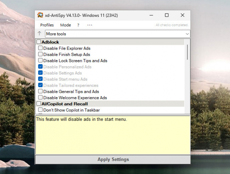 Az xd-AntiSpy az egyik legrégebbi adatvédelmi segédprogram, első verziója még Windows XP-hez készült. Fő célja a telemetriához kapcsolódó háttérszolgáltatások letiltása. Készítője mindent a funkcionalitásnak rendelt alá: egyszerű kezelőfelületén jelölőnégyzetekkel lehet tiltani az automatikus frissítéseket, a helymeghatározási szolgáltatást vagy a háttérben futó alkalmazásokat. A program inkább a haladó felhasználóknak ajánlott, mert a beállítási lehetőségekhez nem tartoznak részletes magyarázatok.