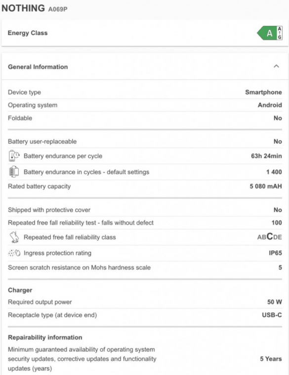Az Europai Unió adatbázisa szerint a Nothing Phone (4a) Pro egy 5,080mAh-es akkumulátort kap, ami csak egy ici-picit nagyobb, mint a korábbi csúcstelefonjuké.