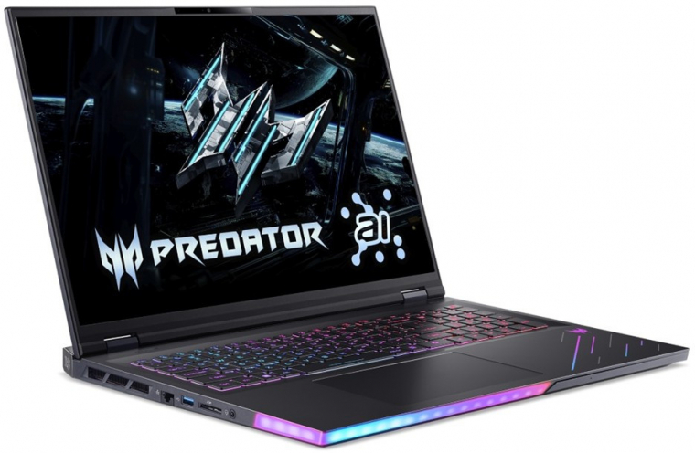 A vagány külső tehát pipa, a belső pedig talán még ennél is jobb. Az Acer az egyik legerősebb Intel processzort, az Intel Core Ultra 9 275X modellt választotta, amely 24-magos kiépítésének köszönhetően bármivel képes megküzdeni. Természetesen a CPU tartalmaz AI-gyorsító modult (NPU) is, így a gép Microsoft Copilot+ PC-kompatibilis és az ehhez passzoló gombot is ott találod a billentyűzeten. Prémium gamergépről lévén szó, nem is volt kérdéses, hogy a rendszermemóriával nem lehet spórolni, ezért itt 32 GB DDR5-öt kapsz, valamint egy 1 TB-os NVMe SSD-t - szintén a gyorsabb fajtából.