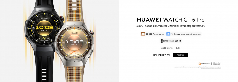 A Huawei hivatalos webshopjában debütált a WATCH GT 6 okosóra, amely akár 21 napos üzemidőt kínál. Az új modellek 2025. szeptember 19. és október 31. között különleges promócióban érhetők el: a vásárlók 15 ezer forintos kedvezménykuponnal, 1 év extra gyártói garanciával és mindössze 399 forintért egy további szíjjal gazdagodhatnak.